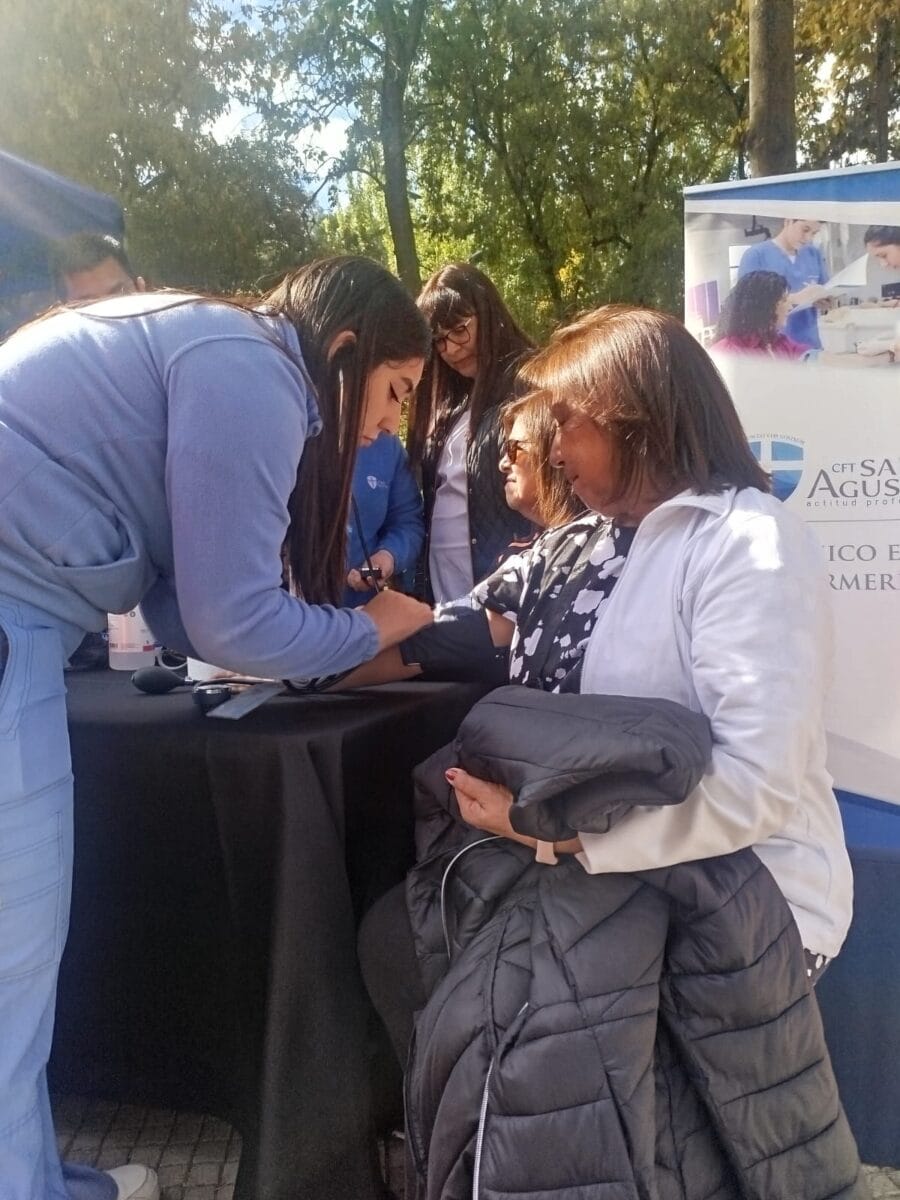 Por otro lado, el equipo de Técnico en Enfermería instaló un stand con control de signos vitales para los adultos mayores asistentes a la actividad y demostraciones de Reanimación Cardiopulmonar (RCP).