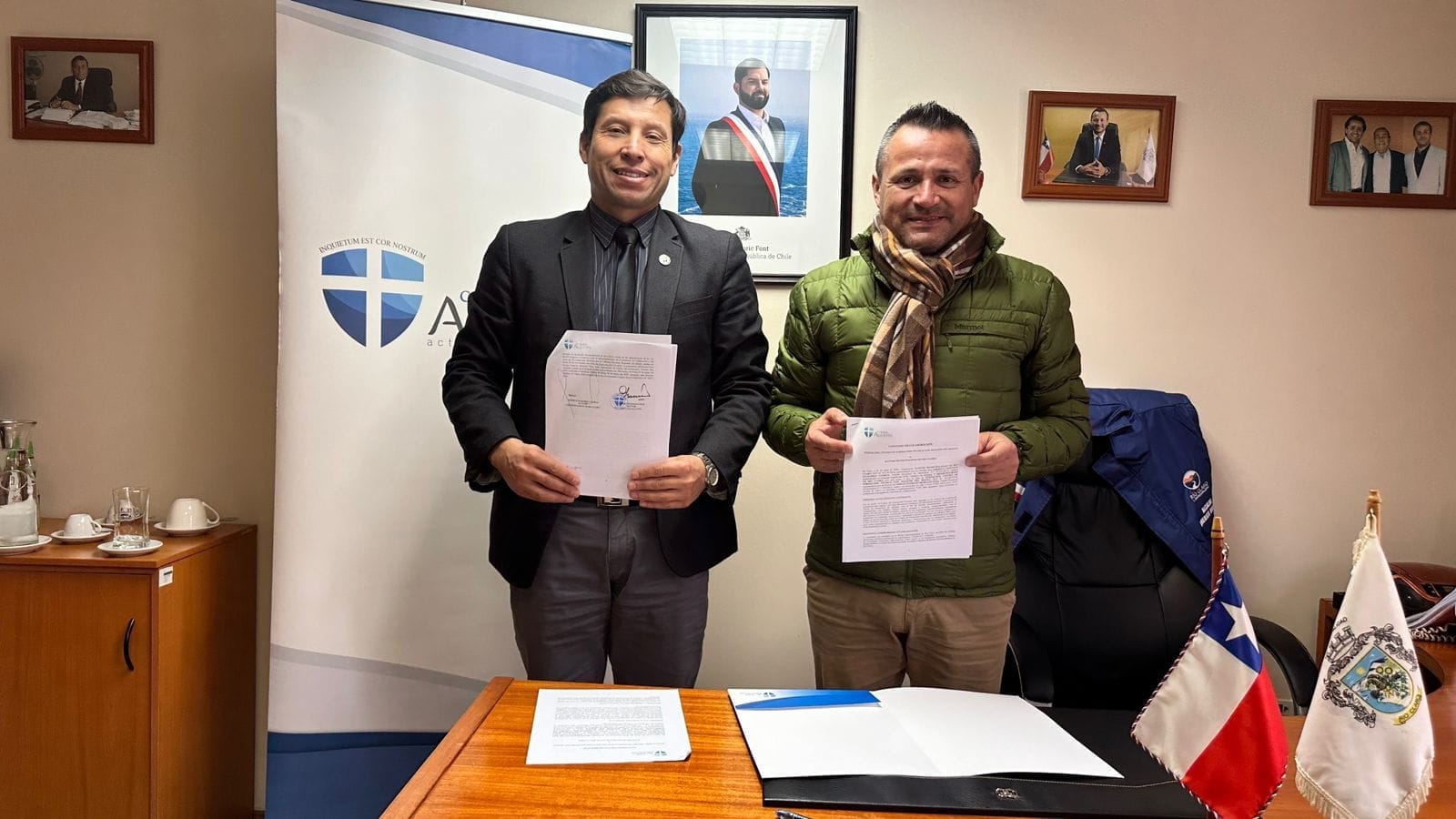 En presencia de Américo Guajardo Oyarce, alcalde de la comuna de Río Claro y Sebastián Tapia, director de sede Talca, este martes 11 de junio se realizó la firma del convenio colaborativo que beneficiará a ambas instituciones.