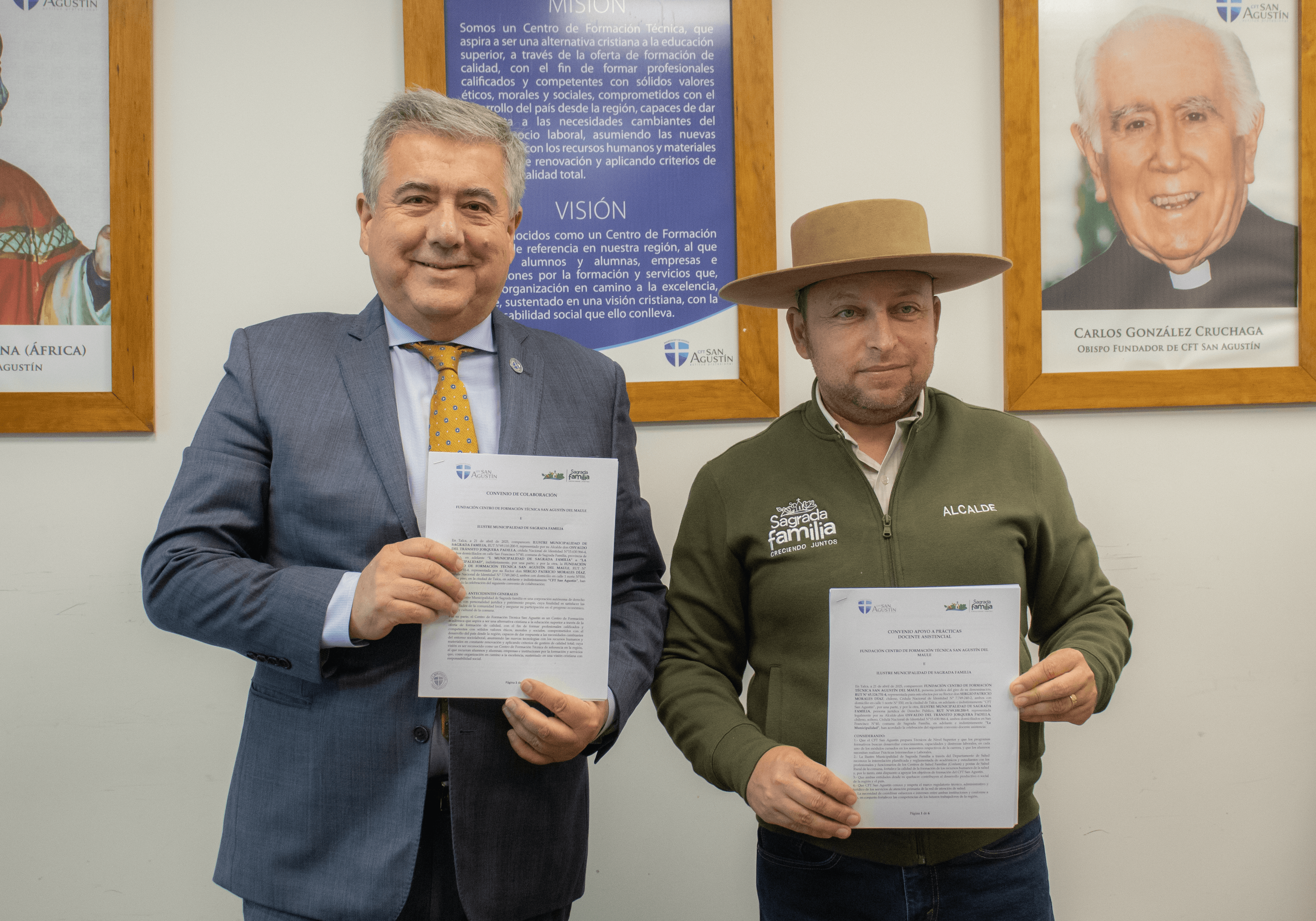 El Centro de Formación Técnica San Agustín y la Municipalidad de Sagrada Familia formalizaron una nueva etapa de trabajo mancomunado al actualizar el convenio docente asistencial y ampliar, a su vez, el convenio de apoyo a prácticas que ahora beneficiará directamente a estudiantes de nueve carreras técnicas.