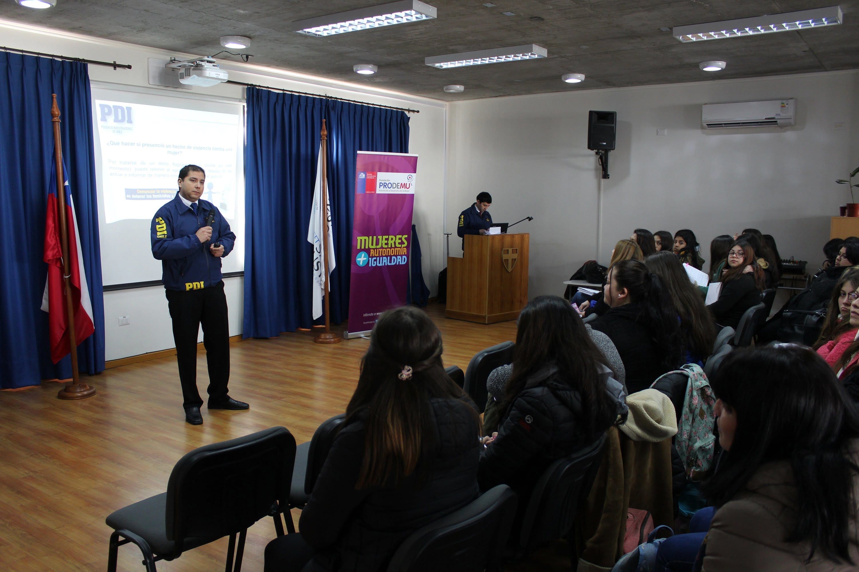 La actividad, realizada en el salón Monseñor Carlos Camus, estuvo a cargo de la Brigada de Homicidios de la Policía de Investigaciones de Linares y se tituló “Todas las mujeres, todos los derechos, todos los días”, la cual abordó temáticas como la violencia en el pololeo, el femicidio, los factores de riesgo y predictores, mecanismos de prevención de la violencia y cómo denunciar estos casos.