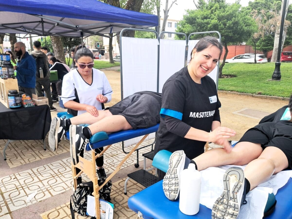 Hasta la Alameda de Talca llegó un grupo de estudiantes de Técnico en Masoterapia de sede Talca, quienes prestaron servicios a los y las participantes de la corrida de 5K y cicletada familiar por la convivencia del reconocido colegio talquino.