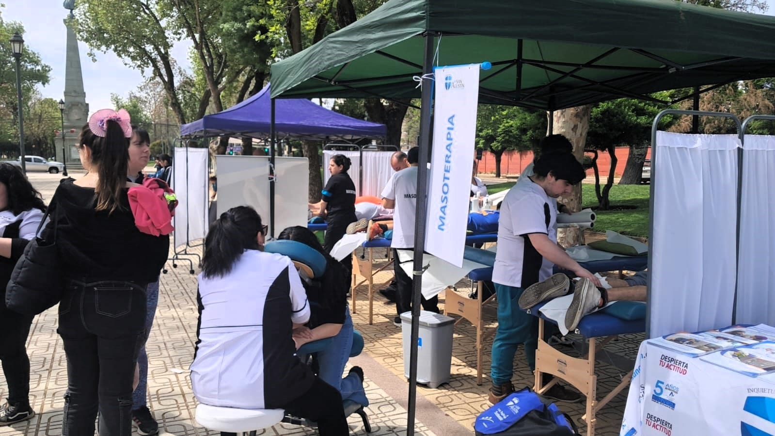 Hasta la Alameda de Talca llegó un grupo de estudiantes de Técnico en Masoterapia de sede Talca, quienes prestaron servicios a los y las participantes de la corrida de 5K y cicletada familiar por la convivencia del reconocido colegio talquino.