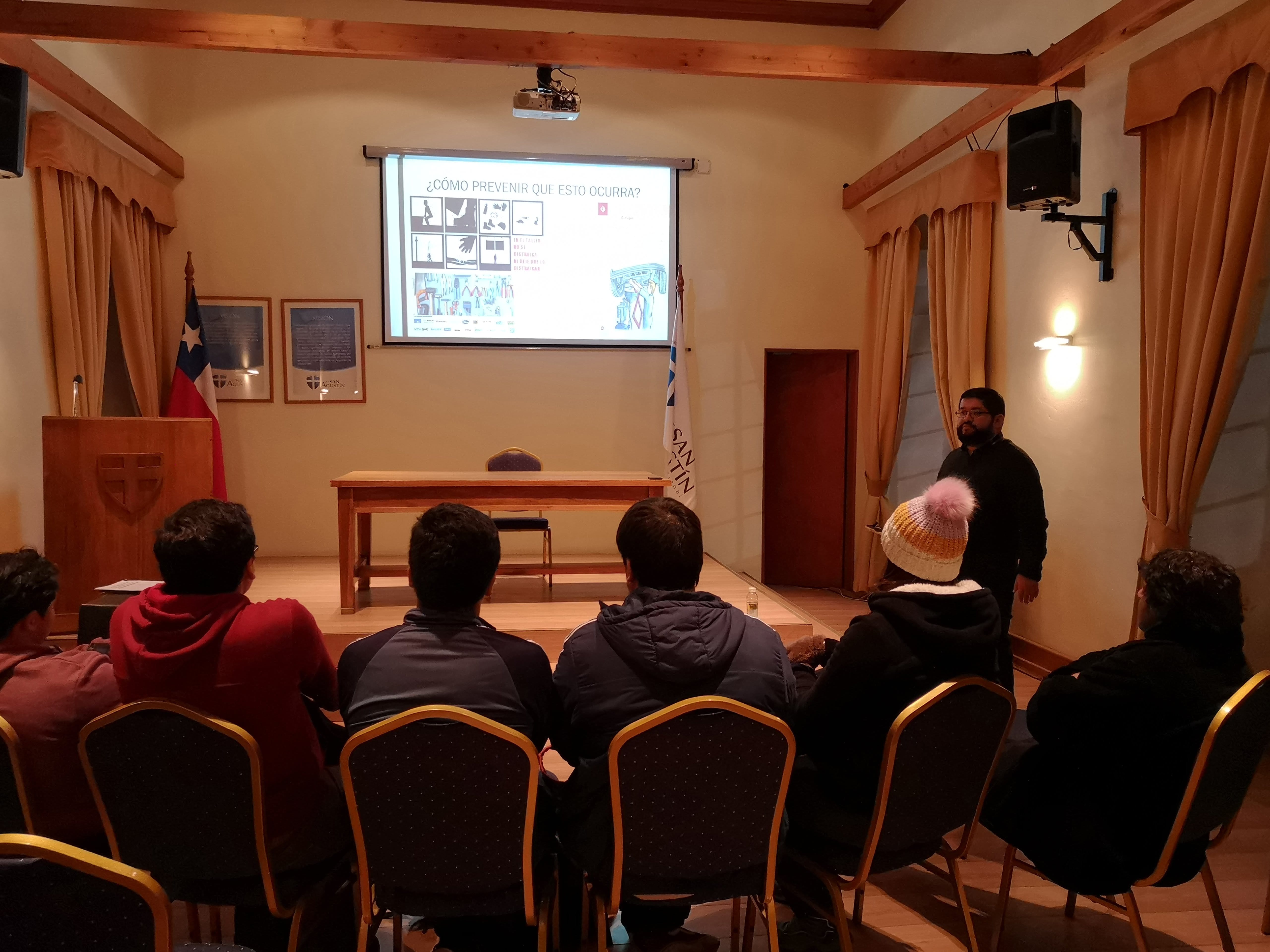 En la jornada, realizada en el Salón Carlos González, se abordaron los tipos de accidentes que suelen ocurrir en los talleres de mecánica o diferentes lugares de trabajos, producto de los descuidos. El taller se gestó dada la necesidad de los estudiantes de obtener conocimientos de prevención, a fin de generar conciencia en las labores que realizarán para evitar accidentes.