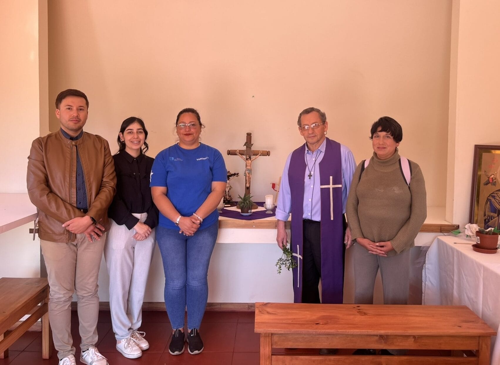 El miércoles 12 de marzo, la comunidad educativa de la sede Cauquenes del CFT San Agustín vivió un significativo momento de fe y unidad con la bendición de sus espacios. La ceremonia, realizada a las 11:00 horas, fue presidida por el capellán José Rodríguez y contó con la participación de miembros del equipo de gestión, entre ellos Francisco Manríquez, jefe de Docencia; Constanza Bravo, jefa de Finanzas; Verónica Abarca, encargada de Formación e Identidad; además de Rosa Díaz y Fernanda Soto, representantes de la pastoral de estudiantes y colaboradores, respectivamente.